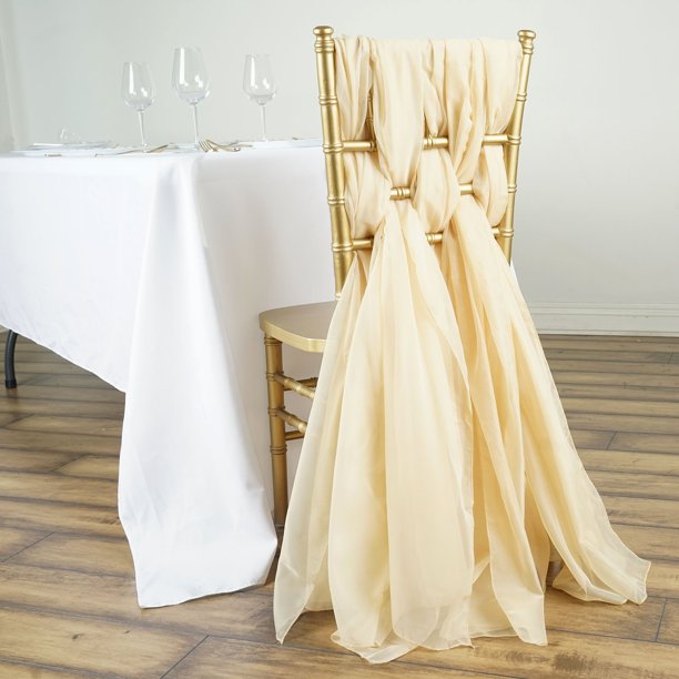 Pin a brooch or other piece of sparkle to the back for an understated elegant look. This diy takes inspiration from the hot wedding trend of tulle skirts and adapts that trend to suit the back of a chair. Chair décor is one of the most overlooked details when you think about wedding décor. Cheap diy upholstery chair for party chair covers also help add extra style, comfort, and personalized touch to the party and can help enhance the theme for all your guests. 6 way to create chair sashes with organza rolls linentablecloth blog diy.