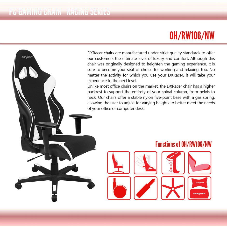 Dxracer Rw106 : Amazon Com Dxracer Racing Series Oh Raa106 Nw Racing Style Bucket Seat Ergonomic Executive Office Gaming Chair Computer Esports Desk Chair With Lumbar Support Pillows Black White Furniture Decor / Is the dxracer rw106ne racing gaming chair price worth it though?